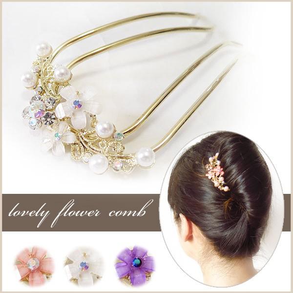 ヘアアクセサリー ヘアアクセ コーム 上品夜会巻き パーティー 2次会 ハーフアップ マーケティング かわいいフラワー 花 パープル パール ホワイト ゴールド ピンク フラワー 特価セール ヘアコーム